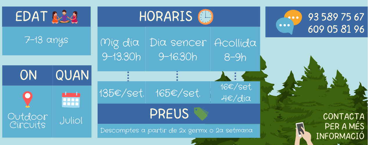 Us presentem el casal d'estiu 2022, aventura't al Bosc! Cada setmana, emprendrem una nova aventura que ens conduirà a explorar el bosc. Entre totes i tots, anirem desxifrant les pistes i superant les proves que se'ns presentin per resoldre el misteri.